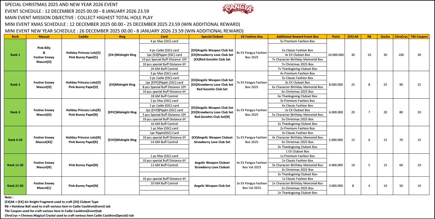 Top 50 players with the highest total holes will receive rewards listed in the reward sheet provided together with this announcement.